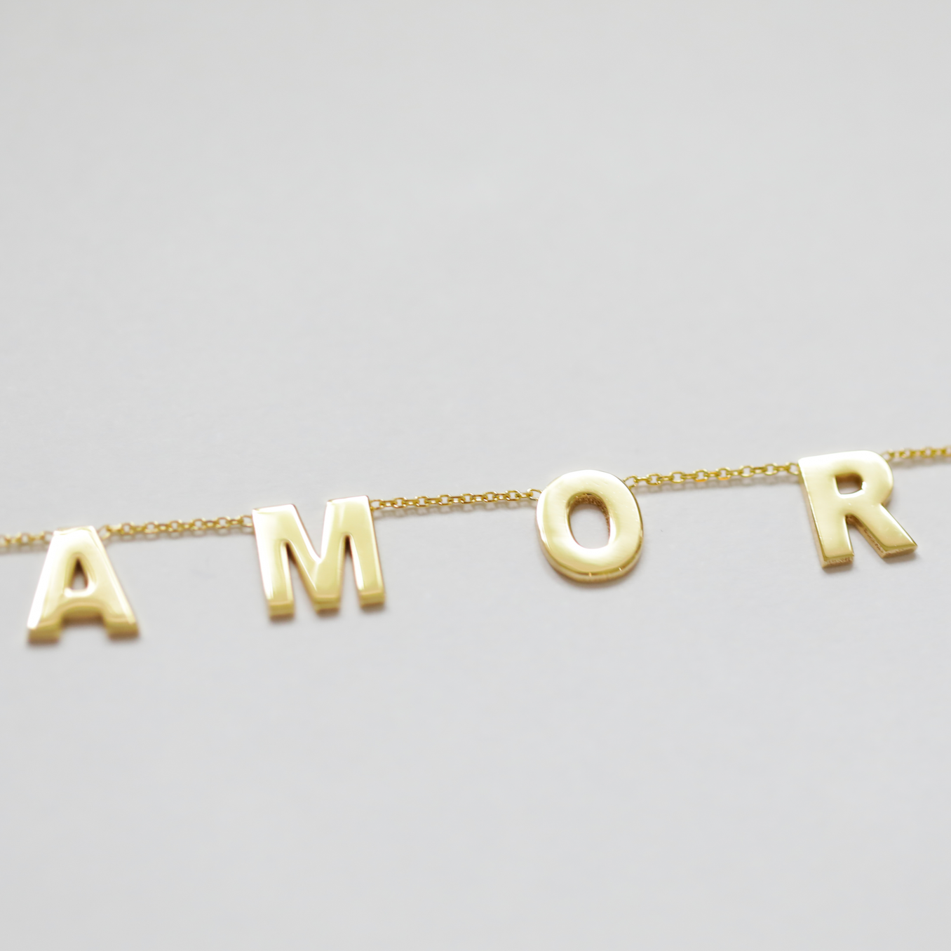 Cadena ajustable 14" y 16". Letras mayúsculas.