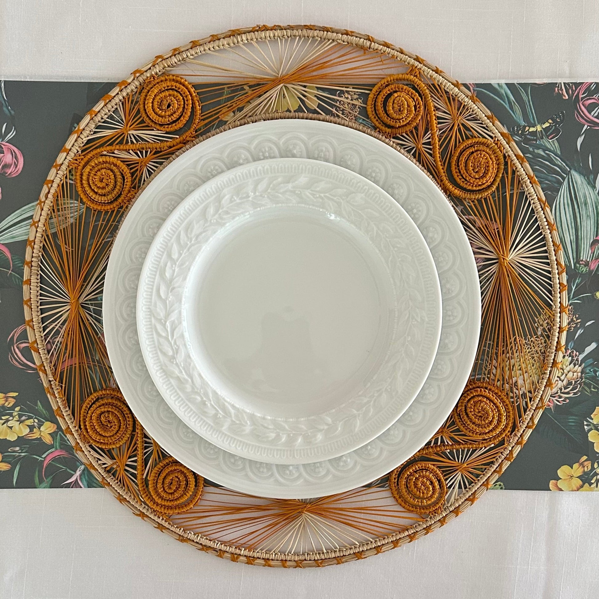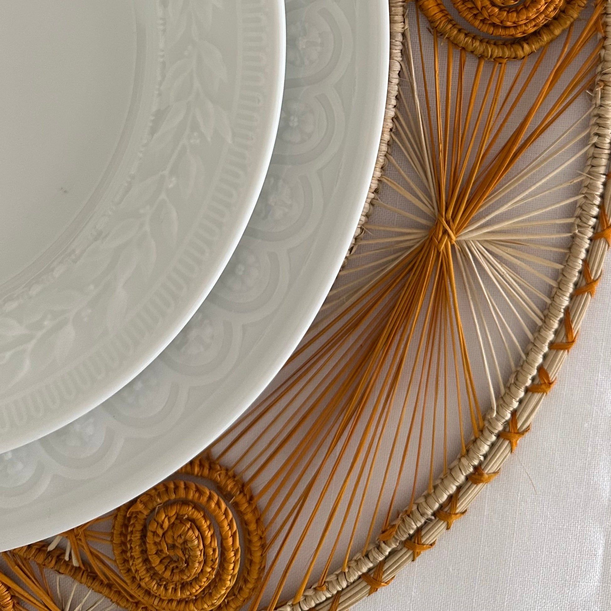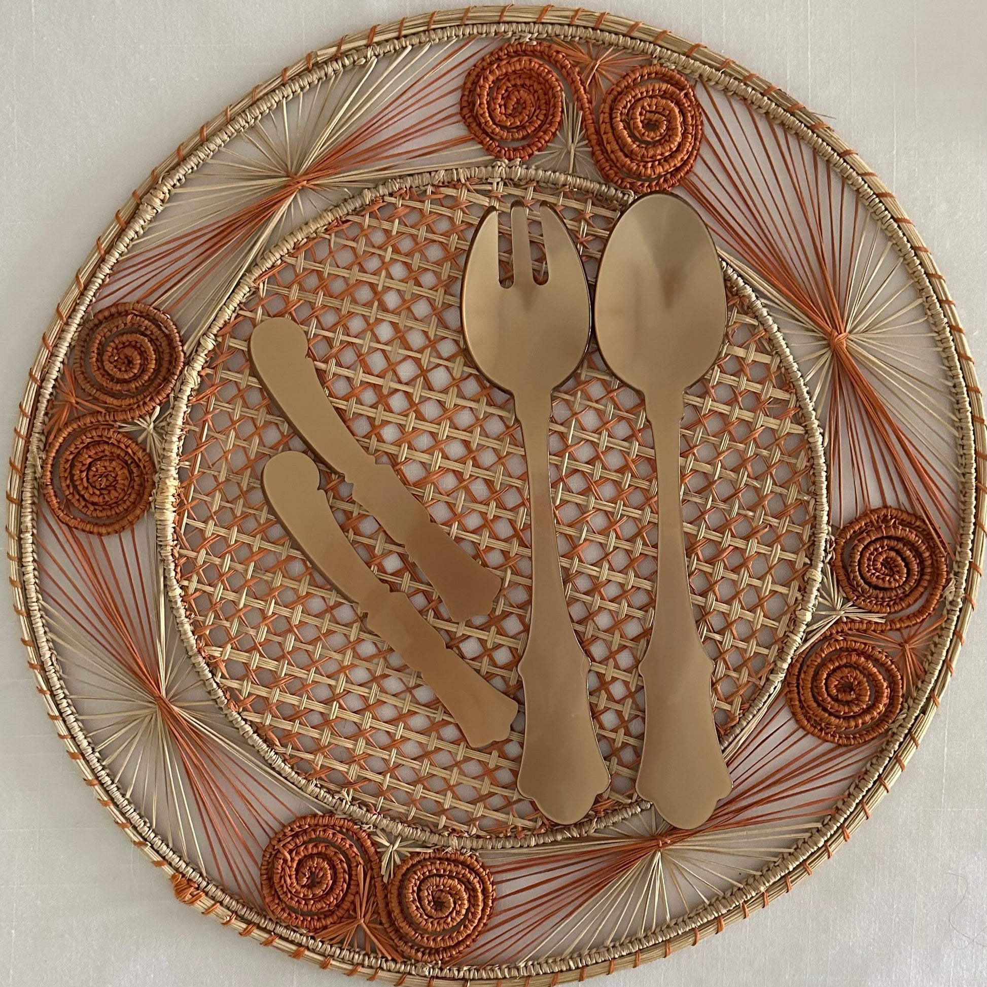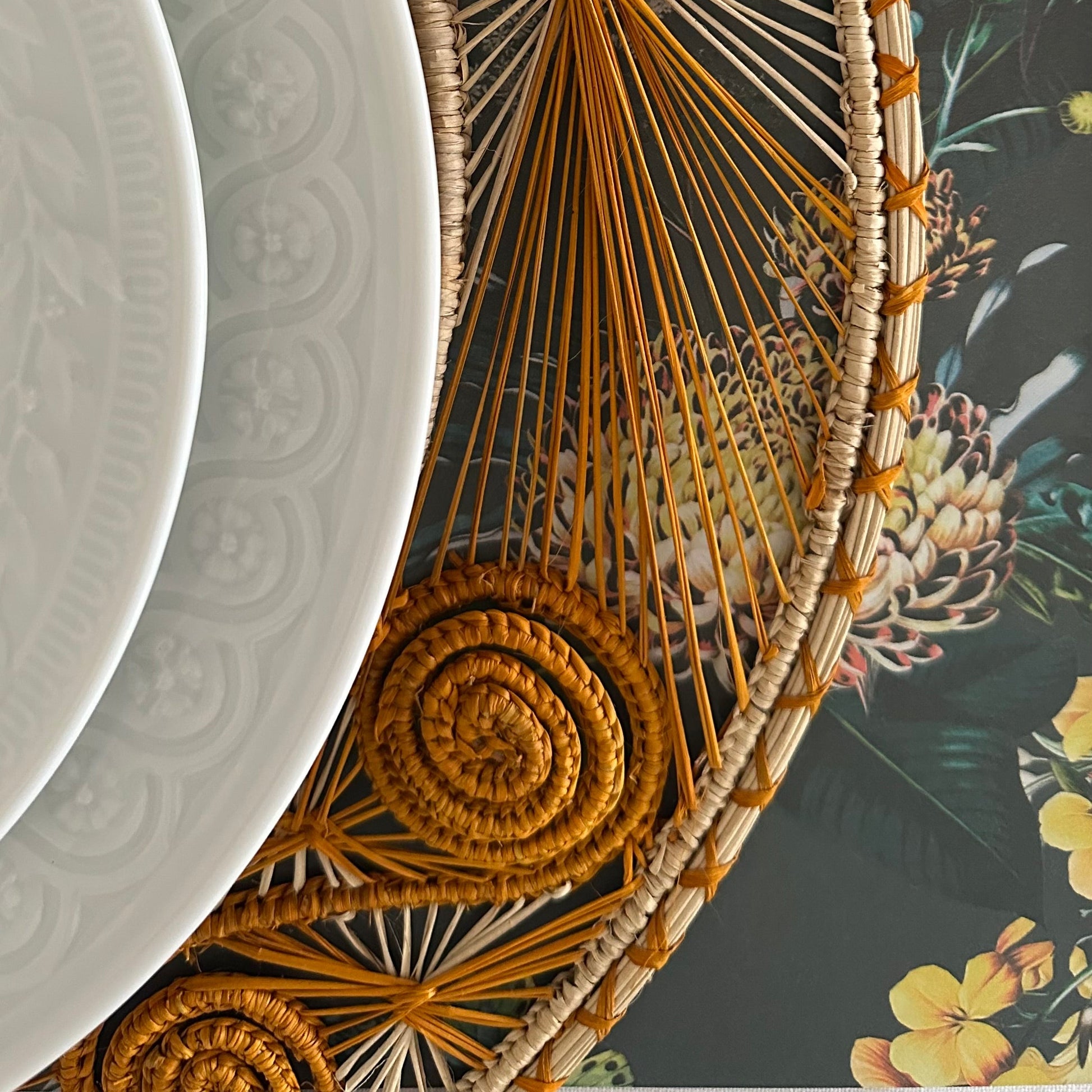 Individual tejido a mano en palma de Iraca. Hecho en Colombia. Ideal como individual o bajo plato. Precio unitario. Limpiar con trapo húmedo.