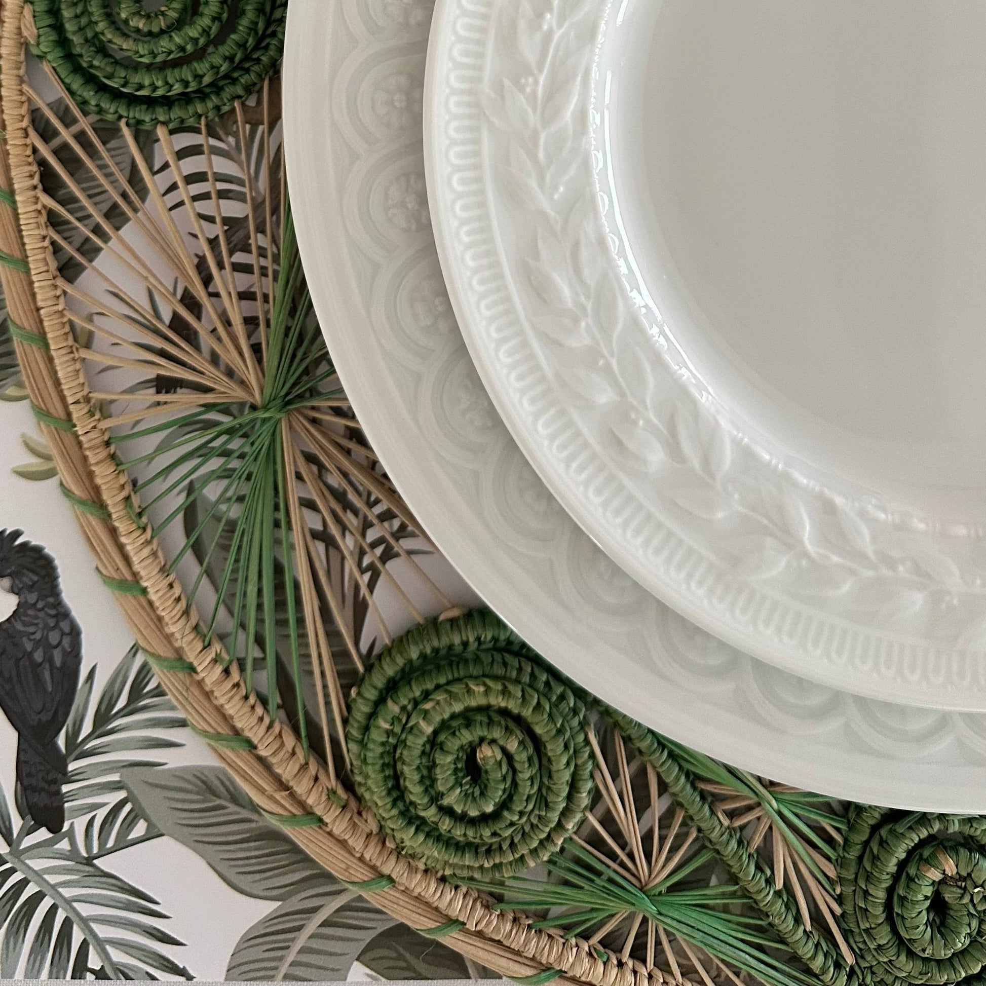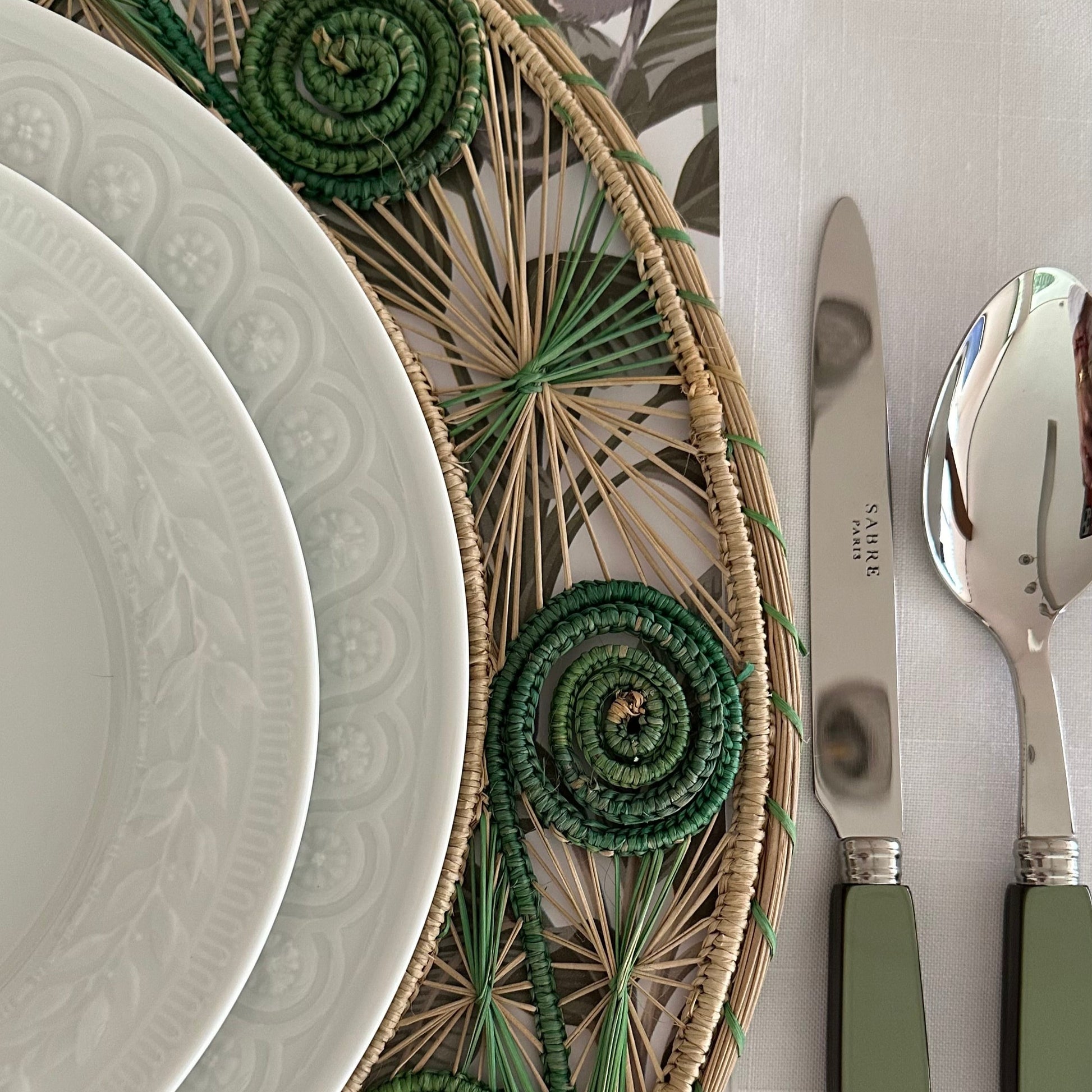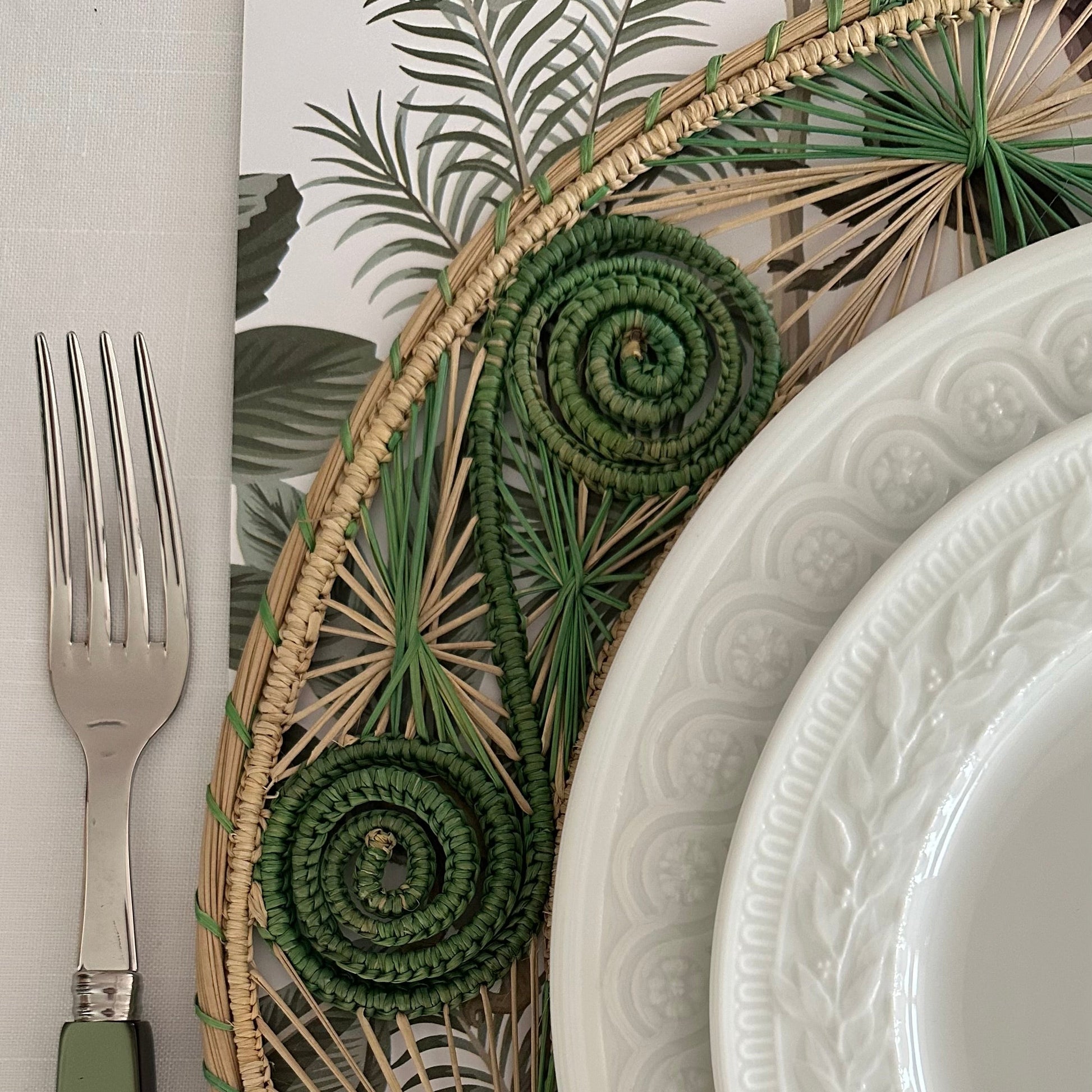 Individual tejido a mano en palma de Iraca. Hecho en Colombia. Ideal como individual o bajo plato. Precio unitario. Limpiar con trapo húmedo.