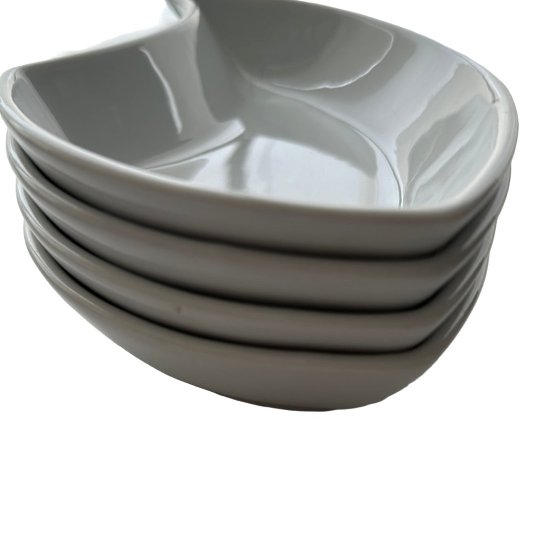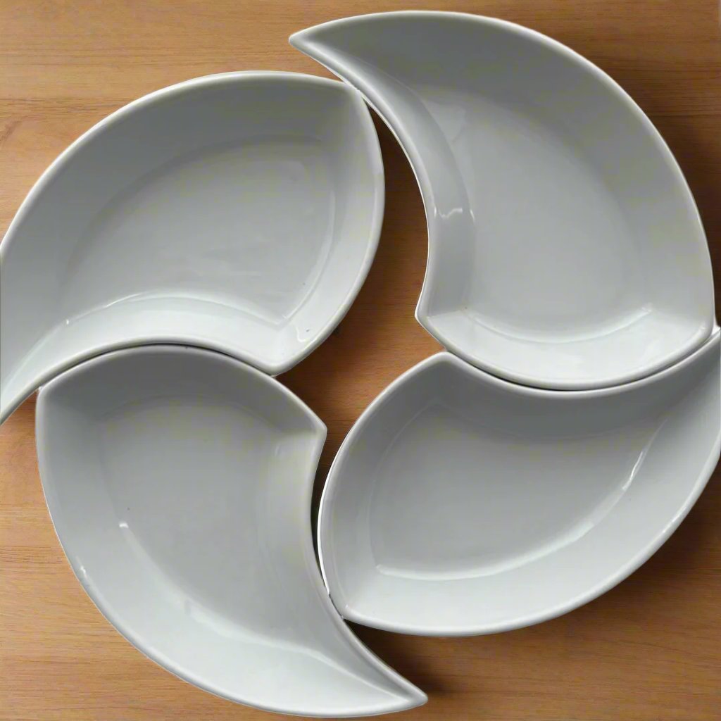 Set de 4 platos en cerámica blanca. Ideales para la ensalada, botana o salsas. Hecho en España. Precio incluye 4 piezas.