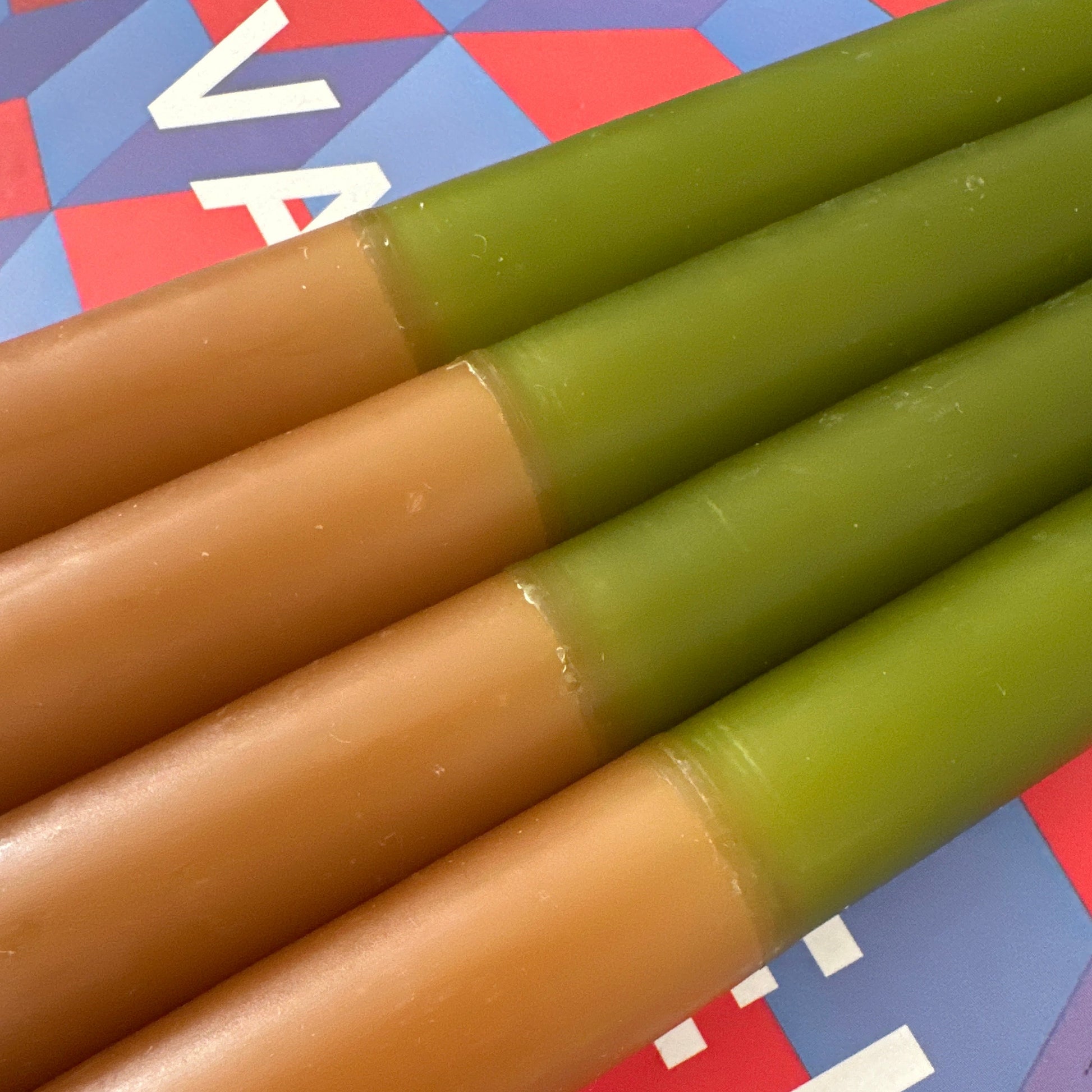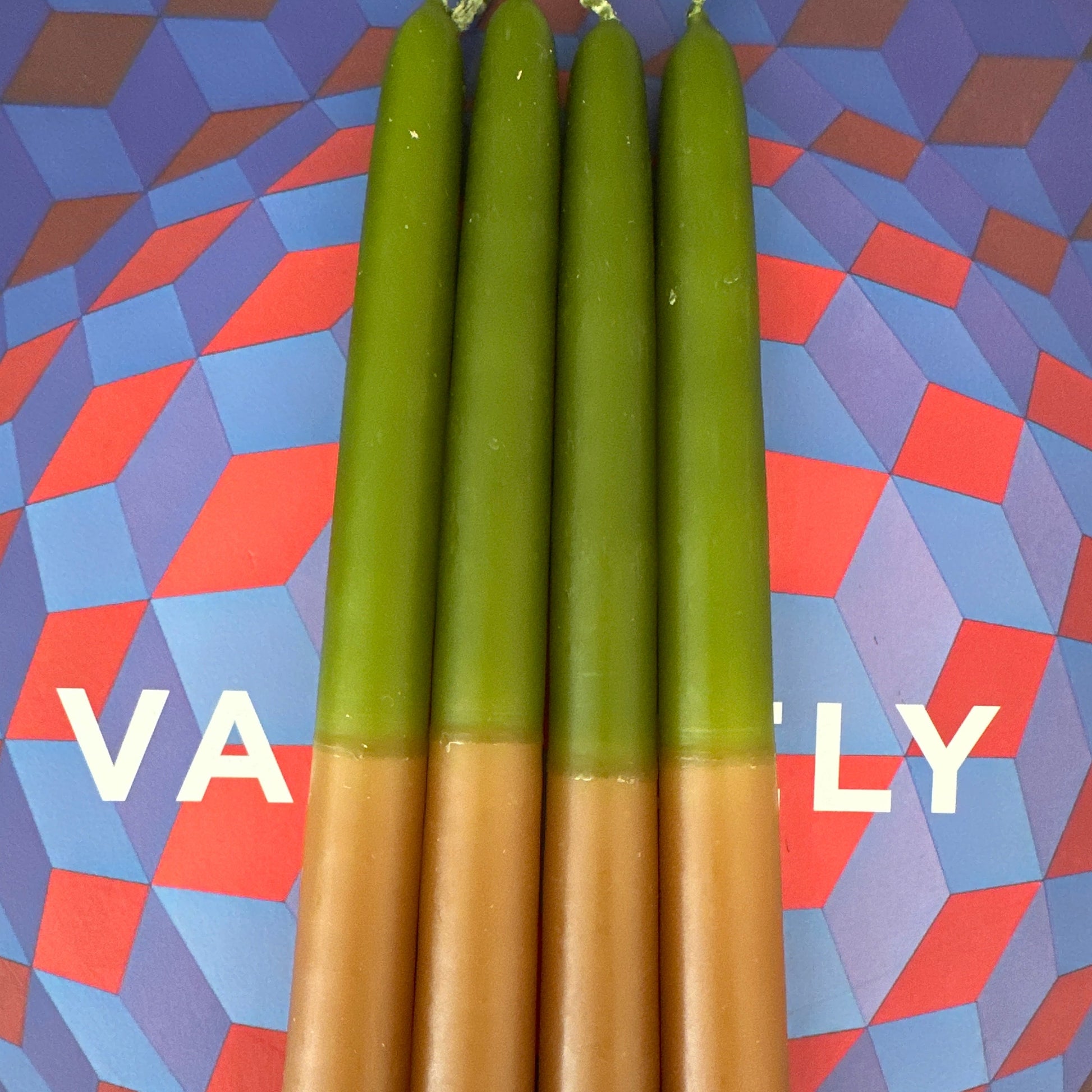 Set de Vela candil 25cm a dos tonos. Precio incluye 4 piezas.