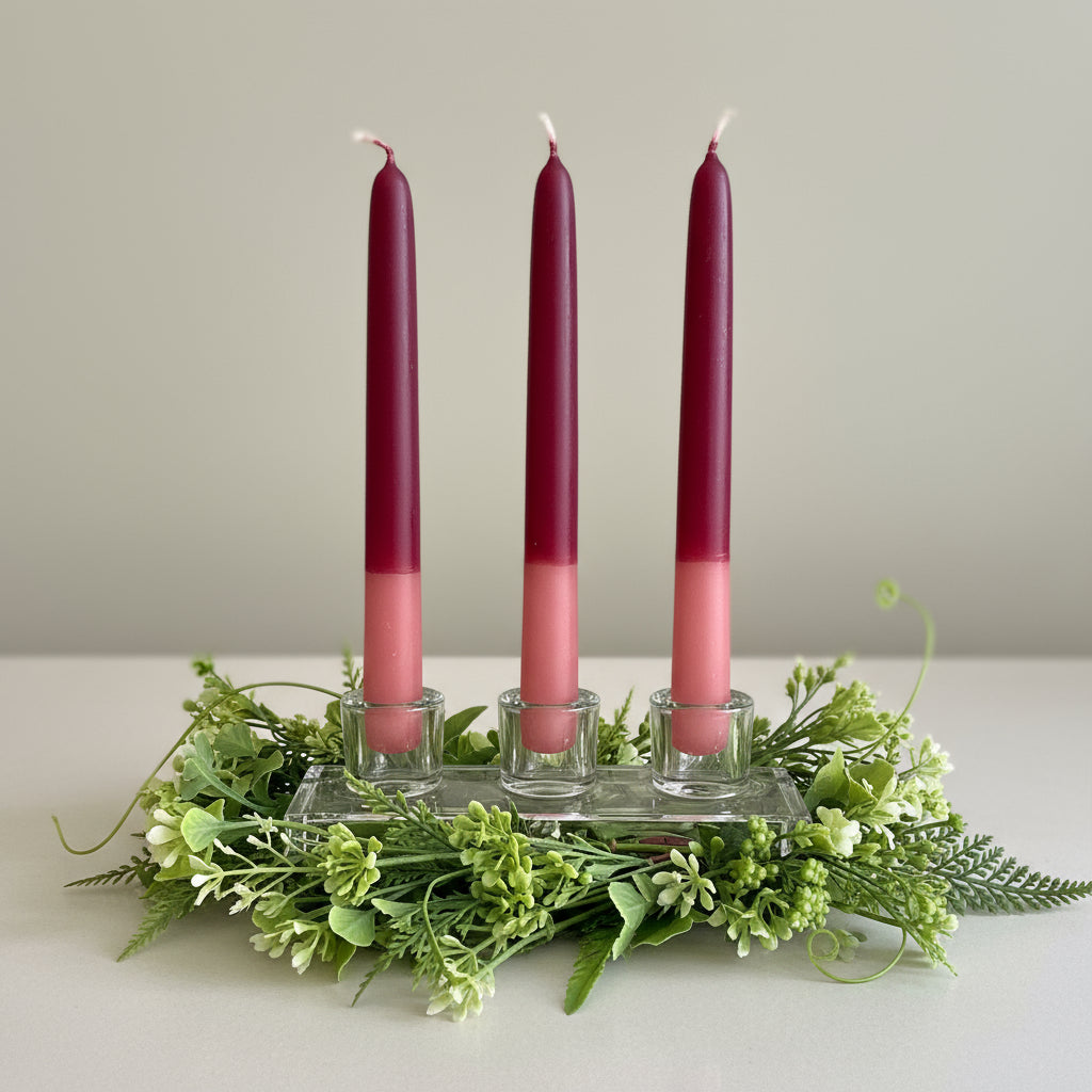 Set de Vela candil 25cm a dos tonos. Precio incluye 4 piezas.