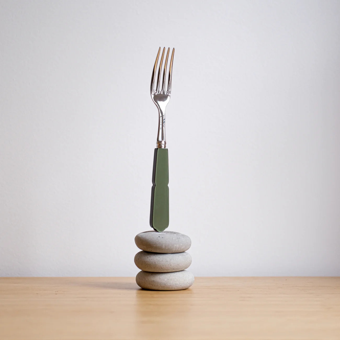 Set de cubiertos de 4 piezas. Incluye: tenedor principal, cuchara sopa, cuchara postre, cuchillo principal. Acero inoxidable y mango de acrílico. Precio incluye para 4 lugares (16 piezas). Hecho en Francia.
