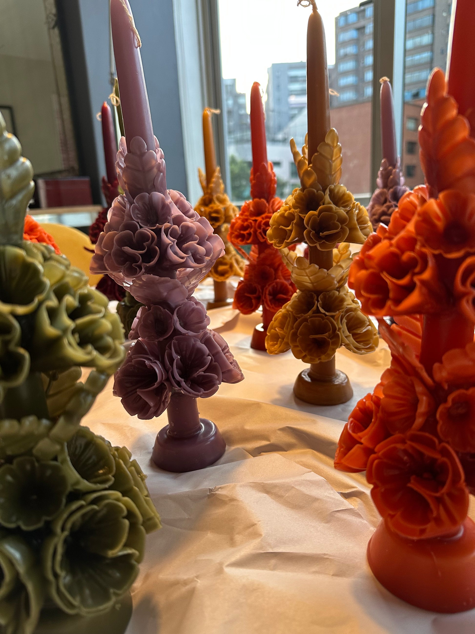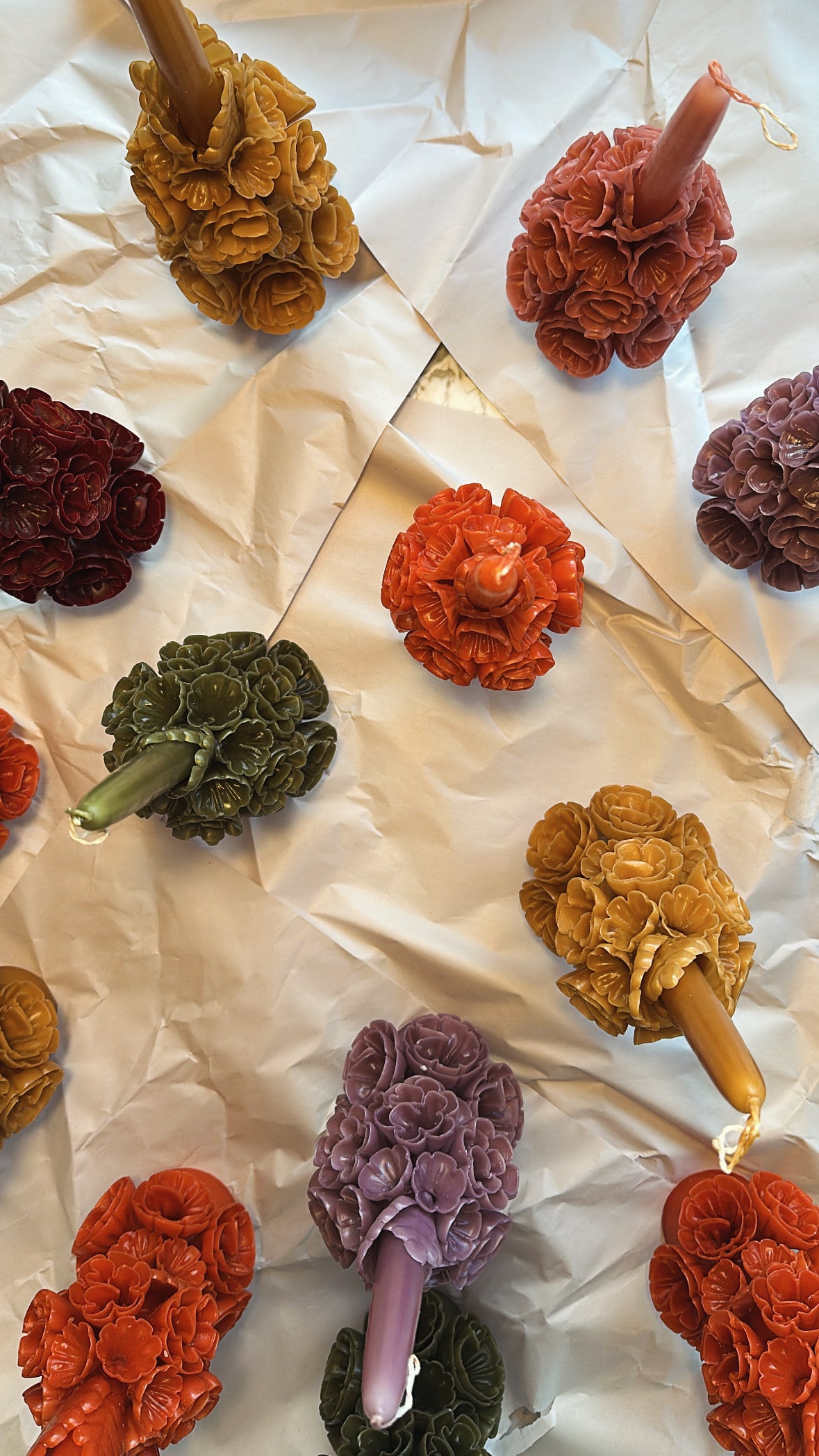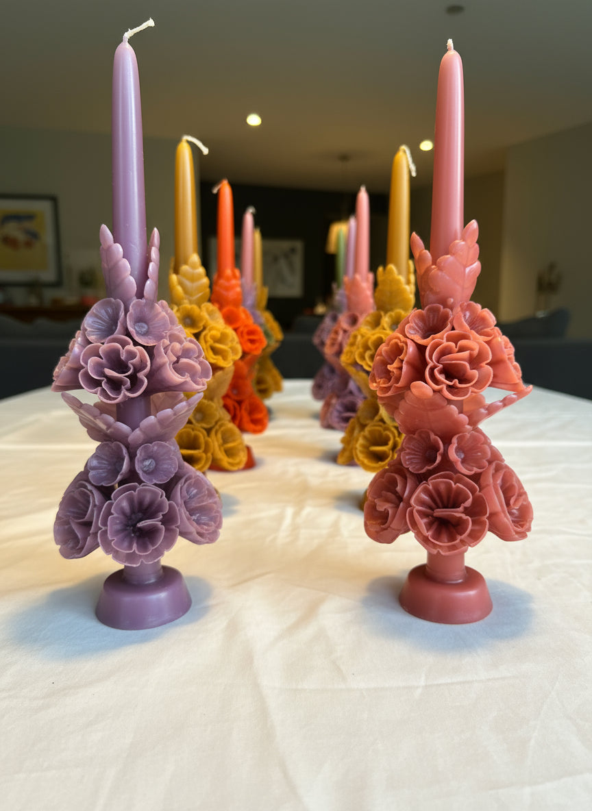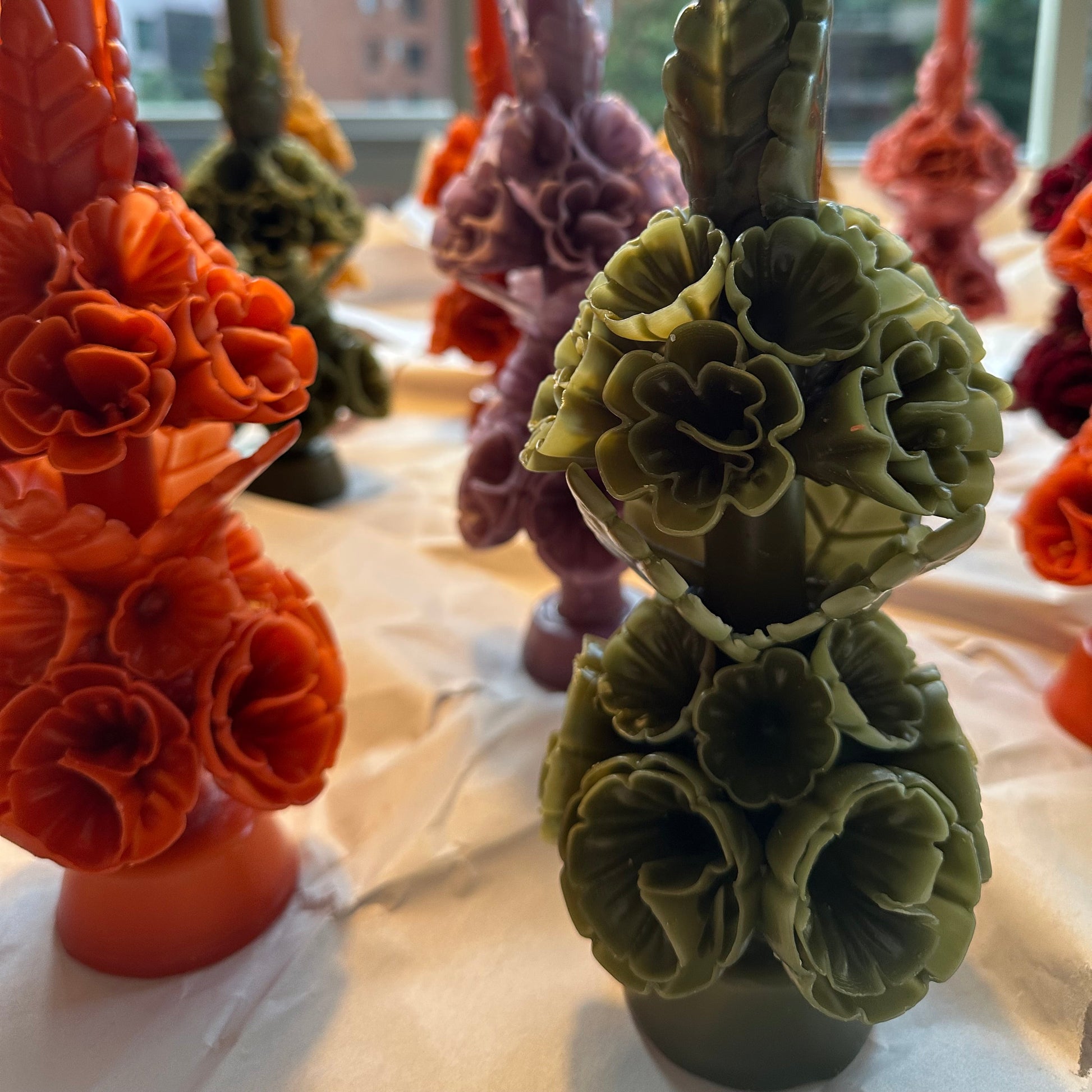 Vela escamada hecha a mano en México de 35cm. Ideal para regalar o para decorar tu mesa o espacios. Precio unitario.
