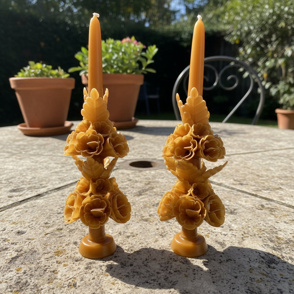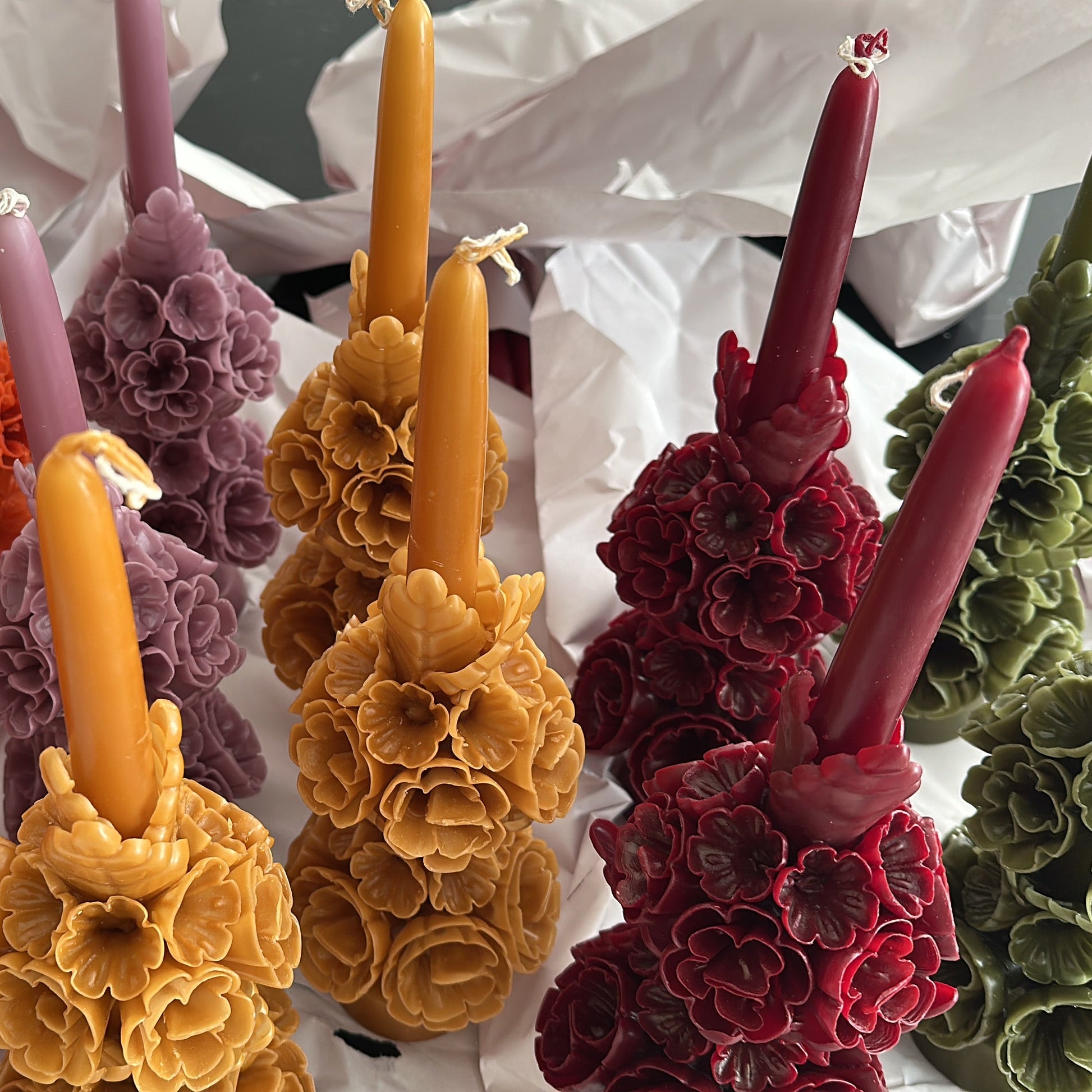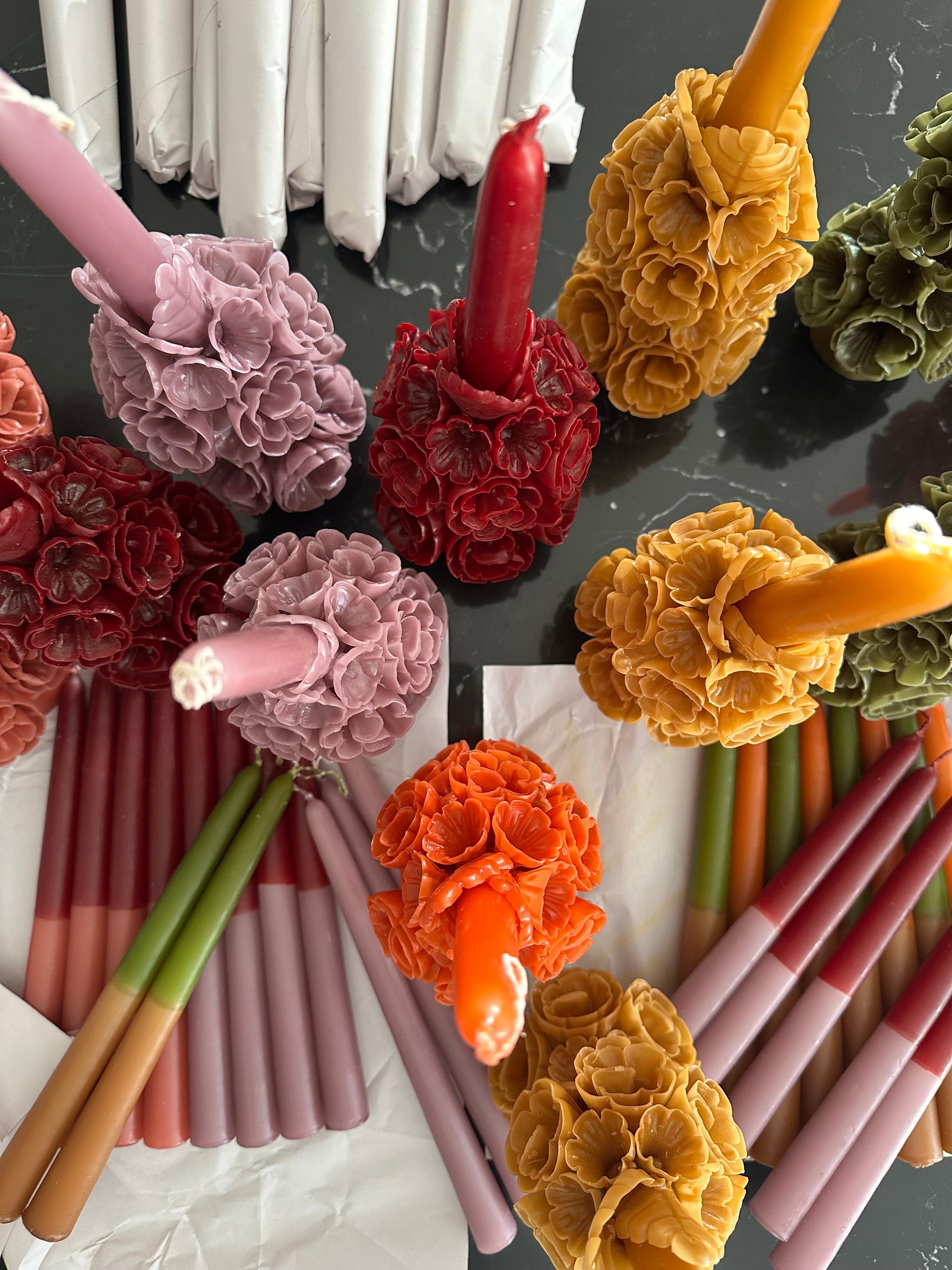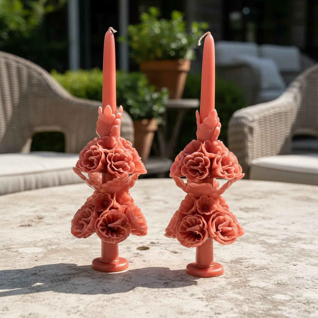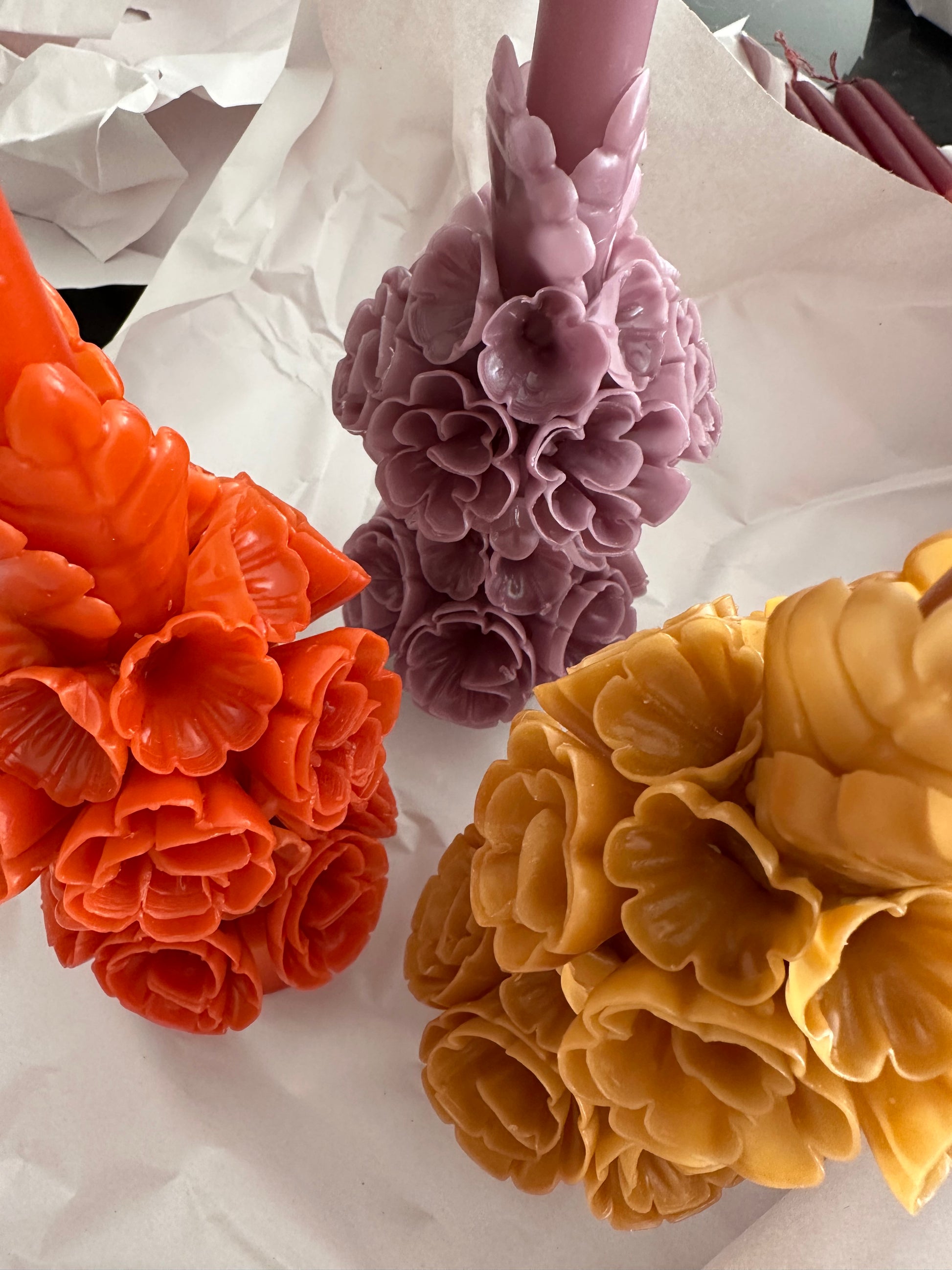 Vela escamada hecha a mano en México de 35cm. Ideal para regalar o para decorar tu mesa o espacios. Precio unitario.